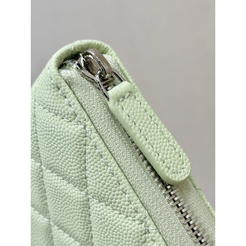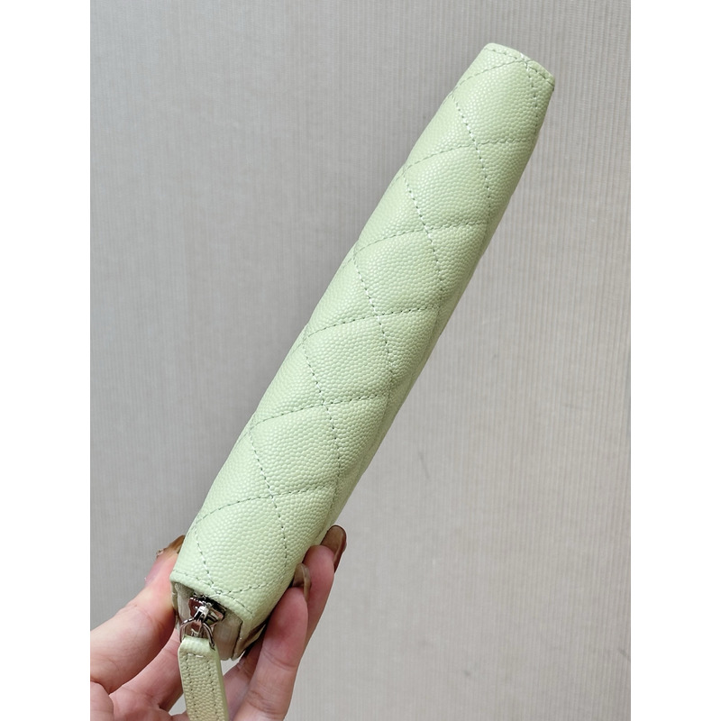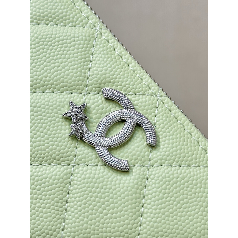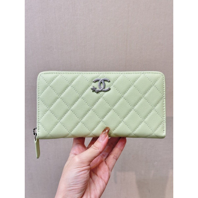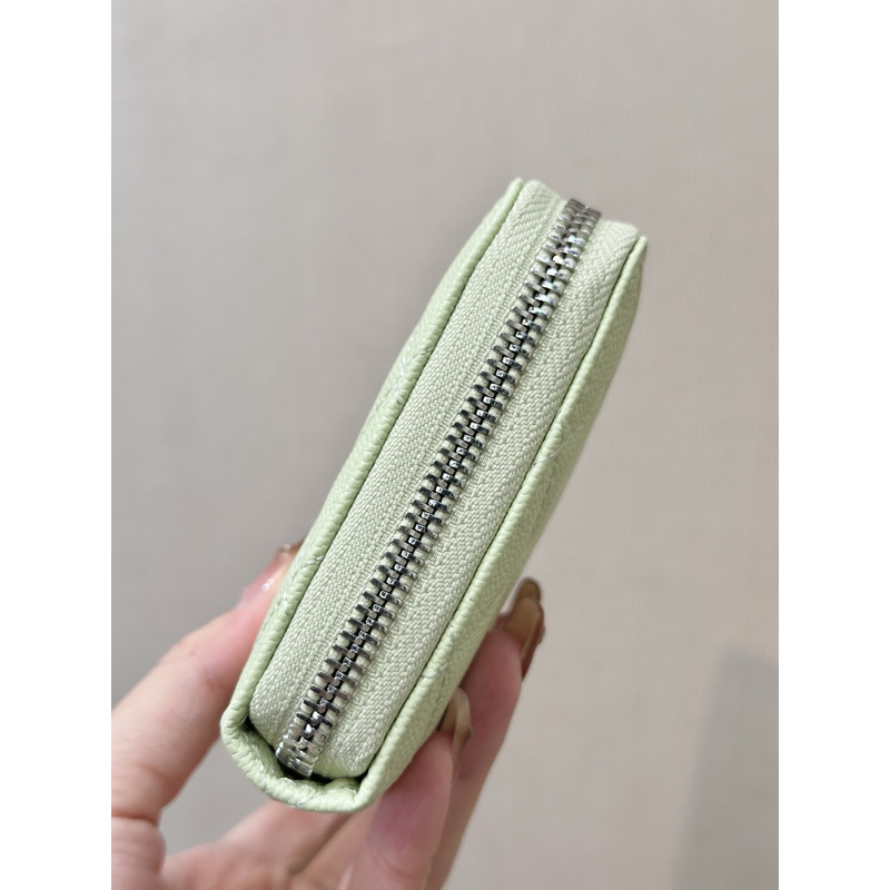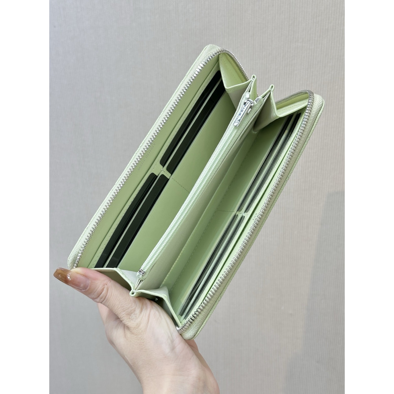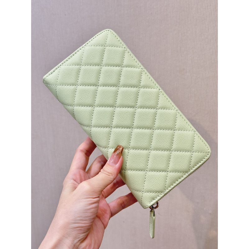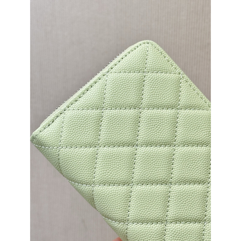 Chanel Classic Quilted Zipped Wallet In Light Green