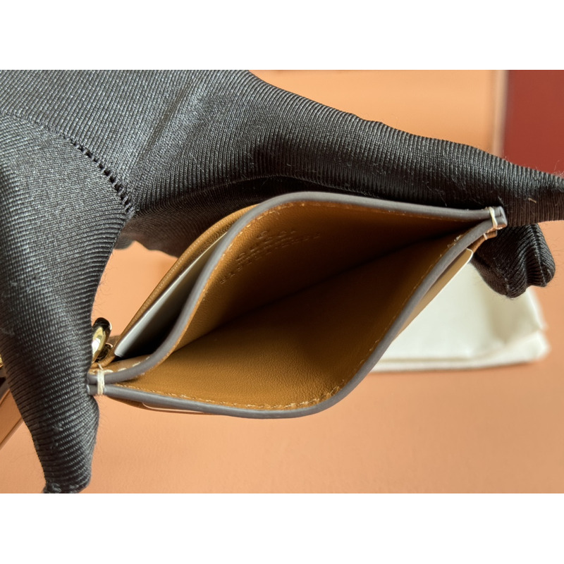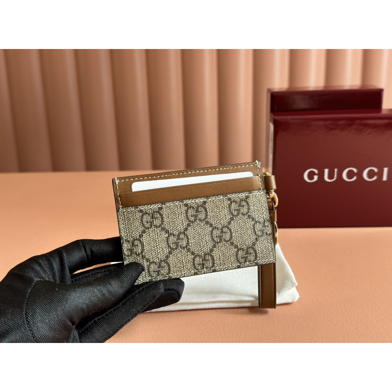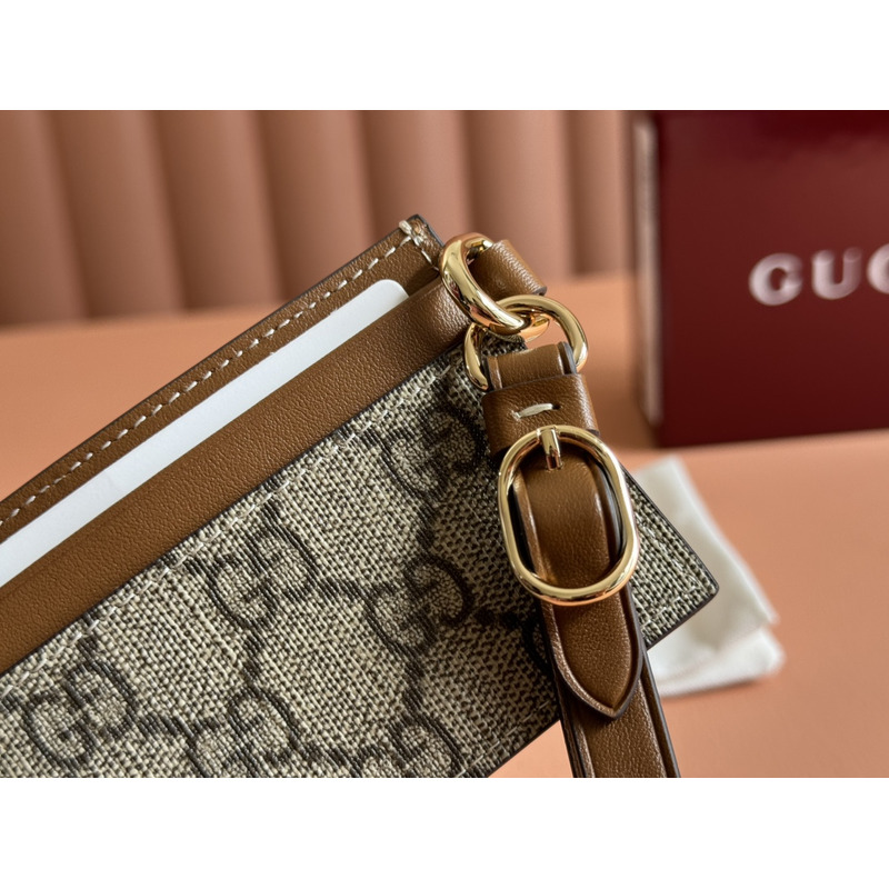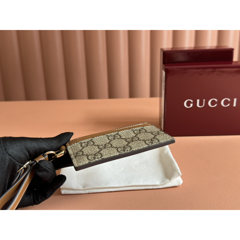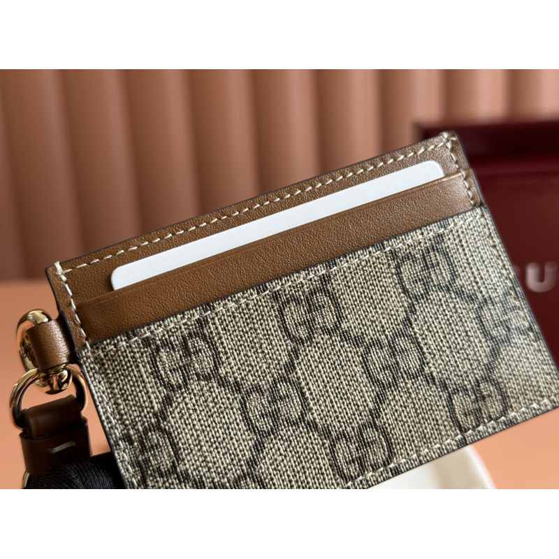 Gucci GG Emblem Card Holders With Strap In Variation Beige And Dark Brown Fabric