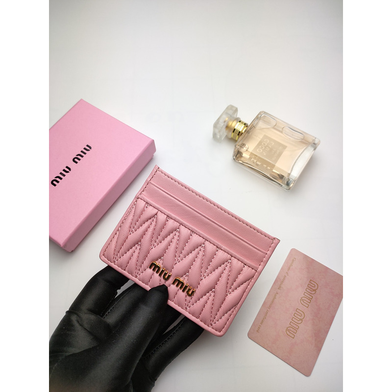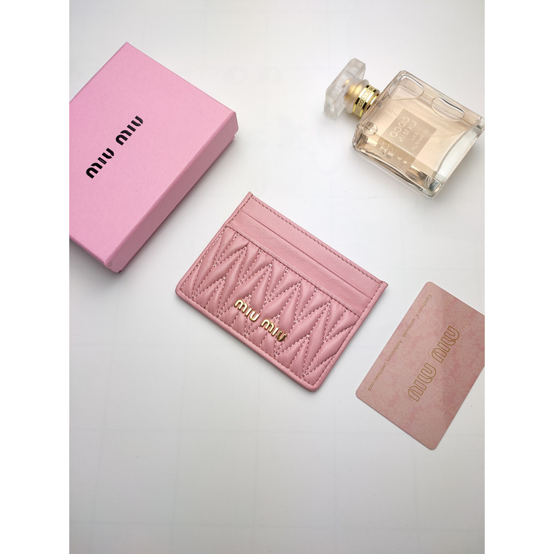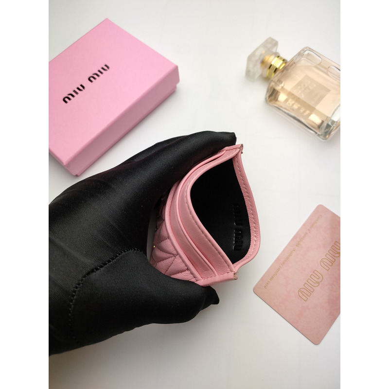 Miu Miu Matelasse Nappa Leather Card Holder In Pink