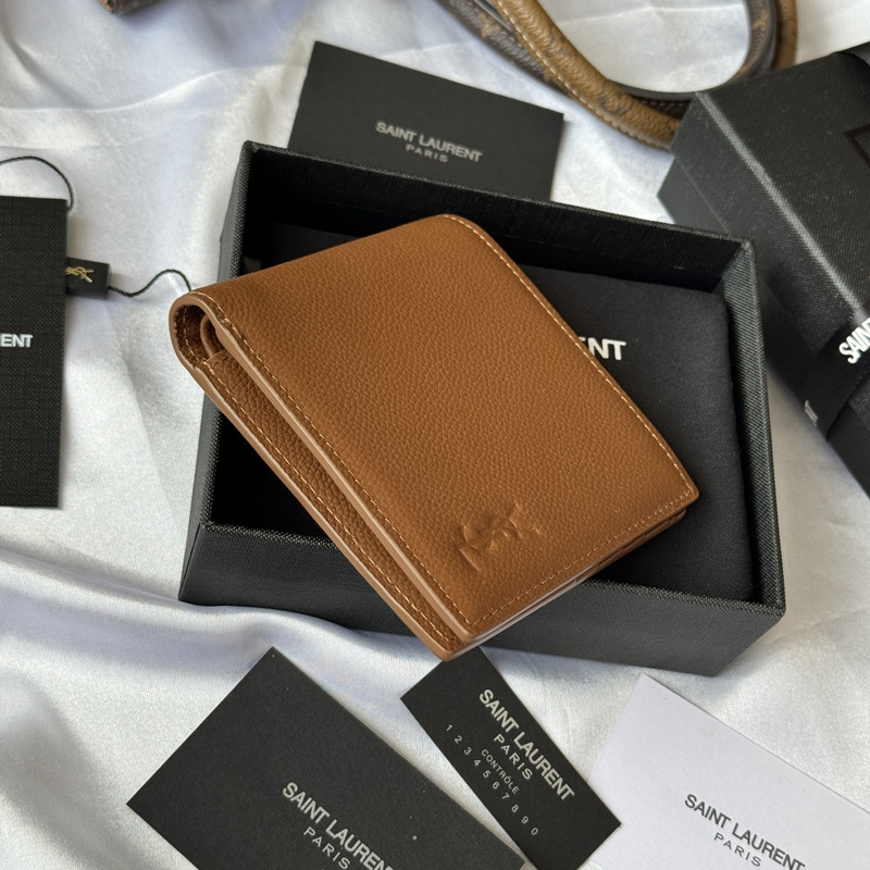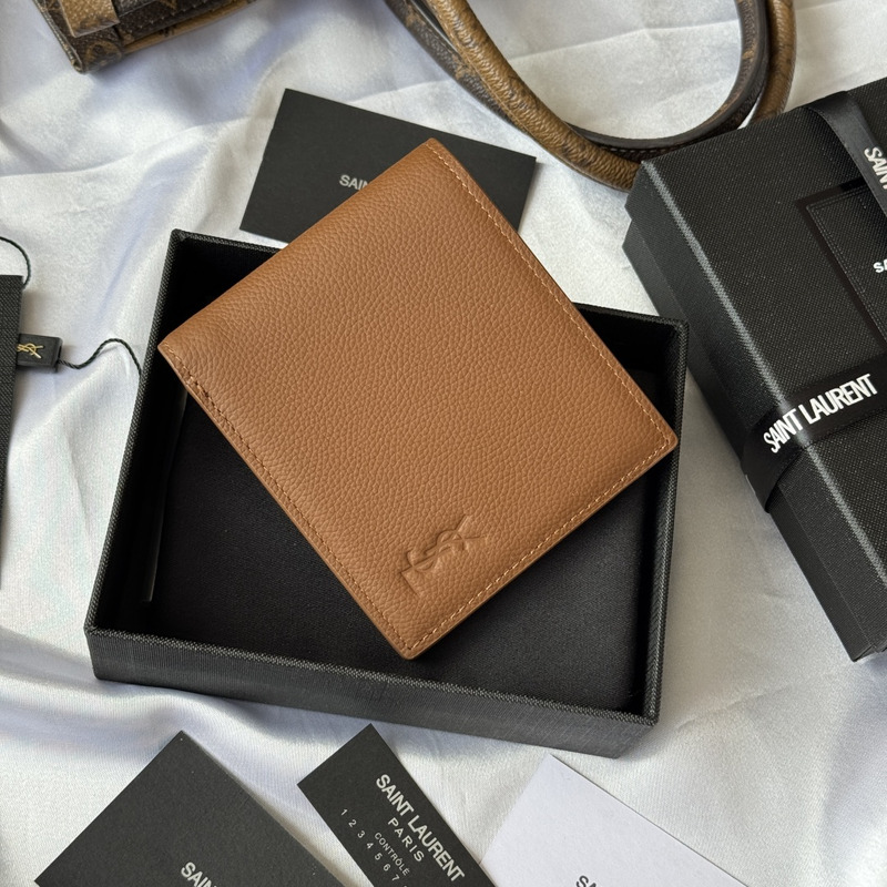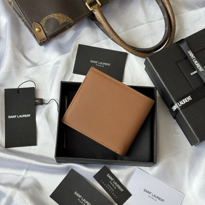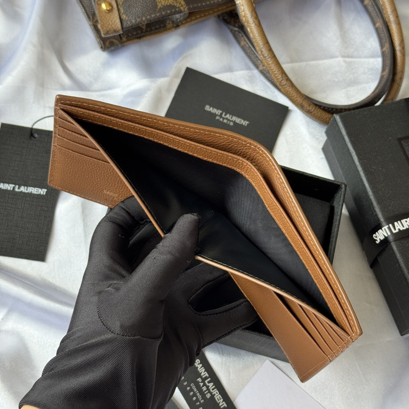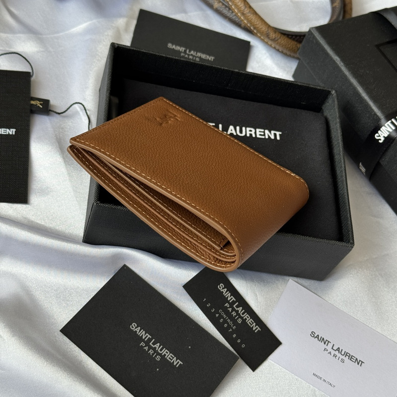 Saint Laurent Tiny Monogram Grain Leather Horizontal Wallet Brown