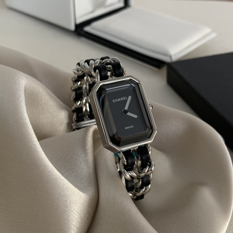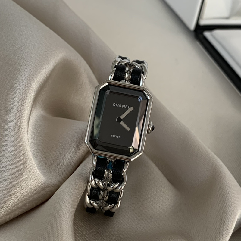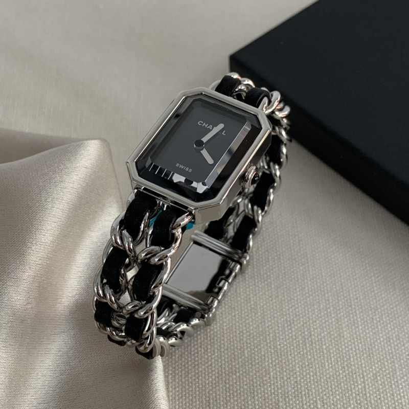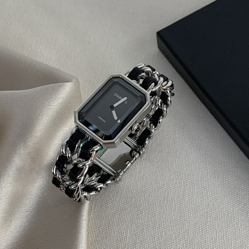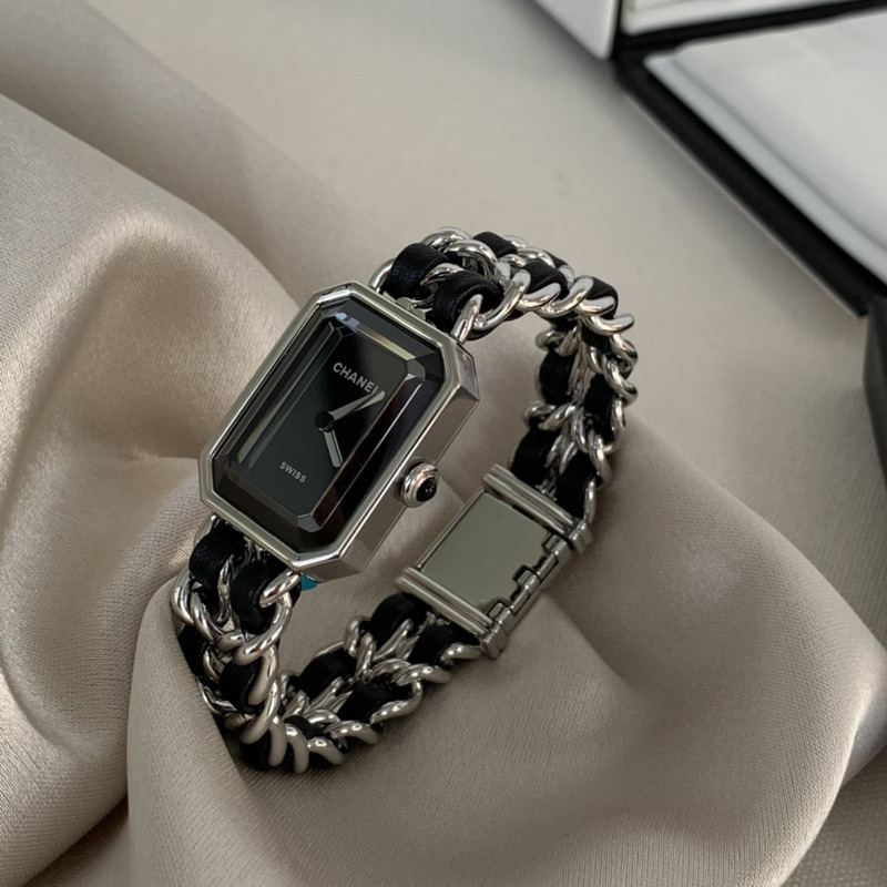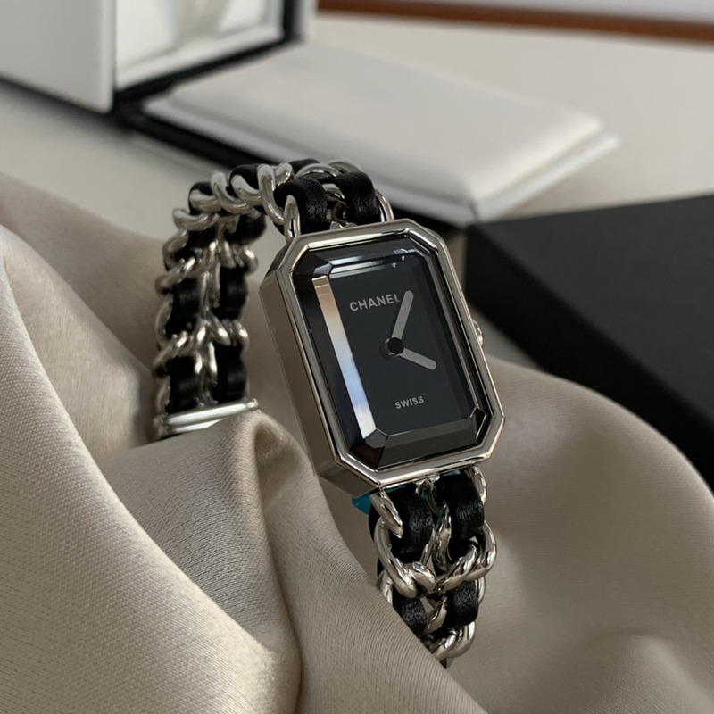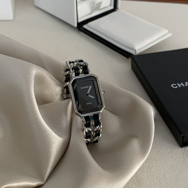 Chanel Première Iconic Chain Watch in Steel and Black Calfskin