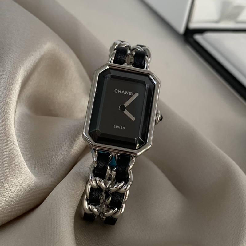 Chanel Première Iconic Chain Watch in Steel and Black Calfskin